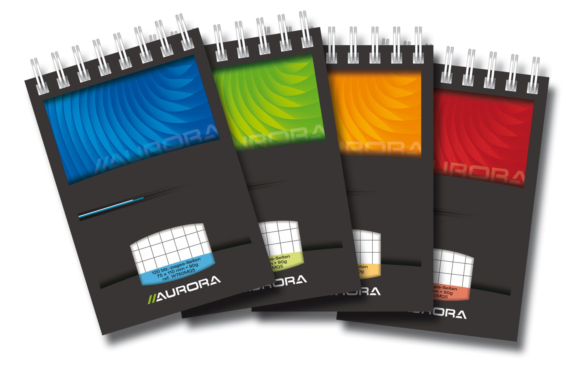Blocnotes cu spirala metalica dubla pe latura de sus.