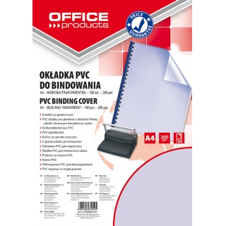 Coperta plastic PVC, 200 microni, A4, 100/top Office Products - albastru transparent