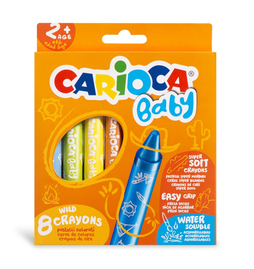 Creioane cerate, rotunde, lavabile, 8 culori/cutie, CARIOCA Baby Wild Crayons 2+