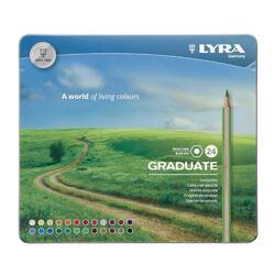 Creioane colorate LYRA Graduate Graphite, 24 culori/cutie metalica