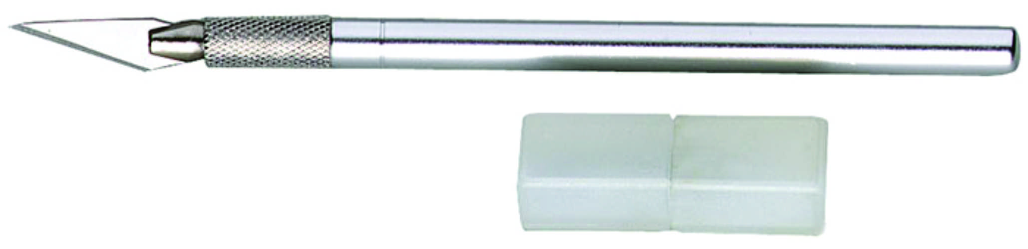 Cutit cu maner rotund din metal si capac de protectie a lamei.
