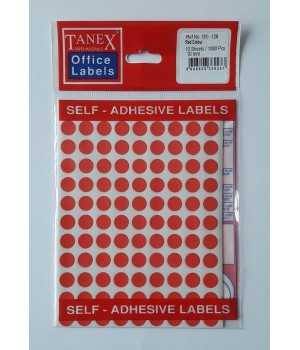 Etichete autoadezive color, D10 mm, 540 buc/set, Tanex - rosu