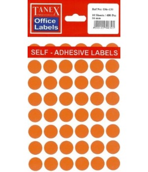 Etichete autoadezive color, D16 mm, 480 buc/set, Tanex - orange
