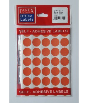 Etichete autoadezive color, D19 mm, 350 buc/set, Tanex - orange