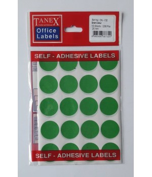 Etichete autoadezive color, D25 mm, 200 buc/set, Tanex - verde