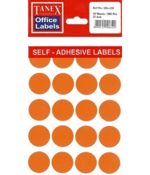 Etichete autoadezive color, D25 mm, 200 buc/set, Tanex - orange