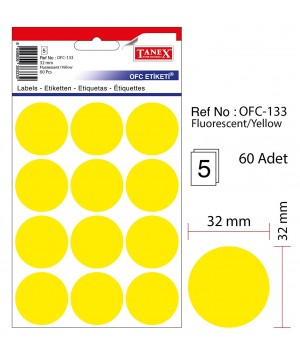 Etichete autoadezive color, D32 mm, 120 buc/set, Tanex - galben fluorescent