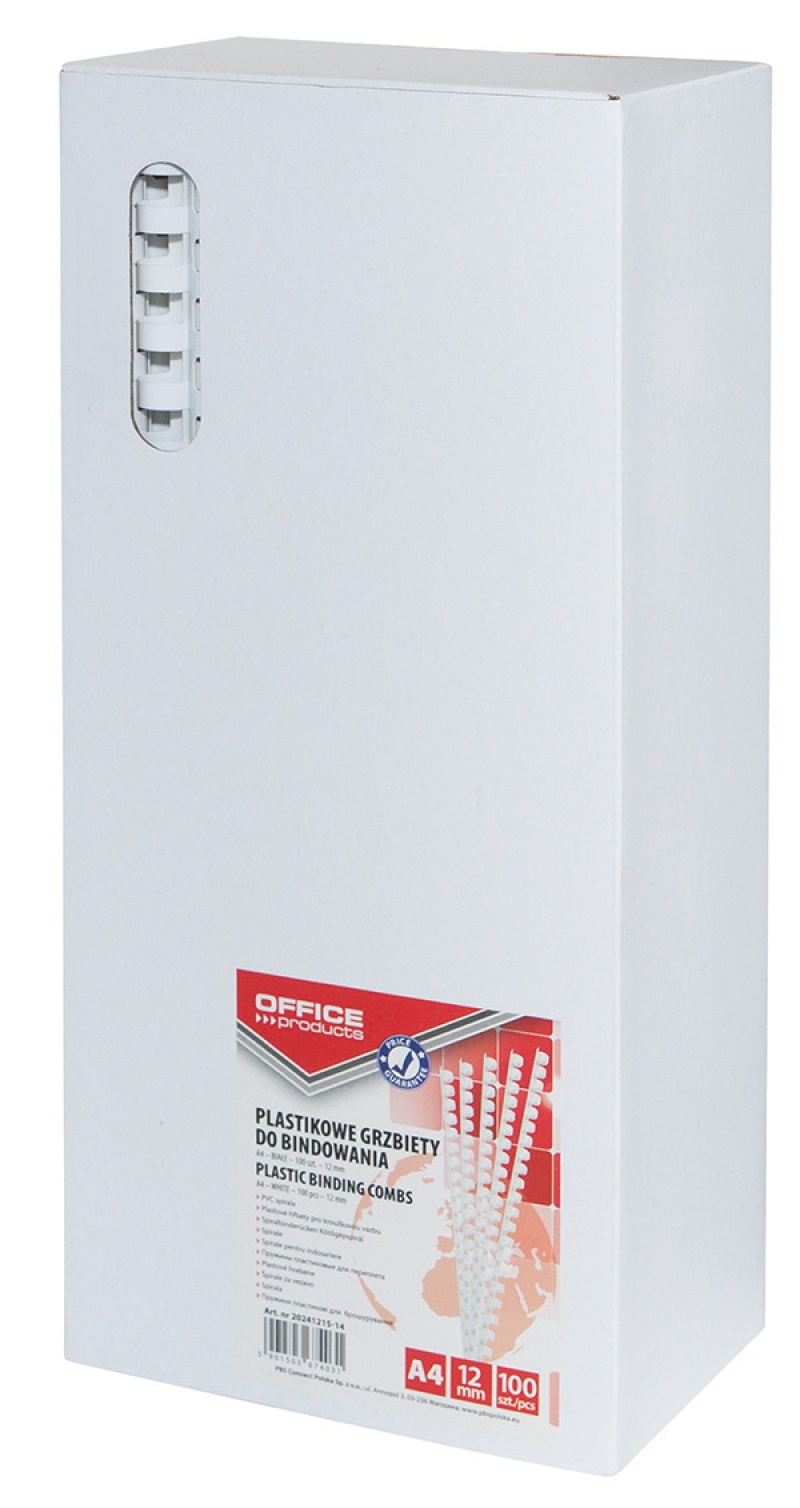 Inele plastic 12 mm, max 95 coli, 100buc/cut, Office Products - alb