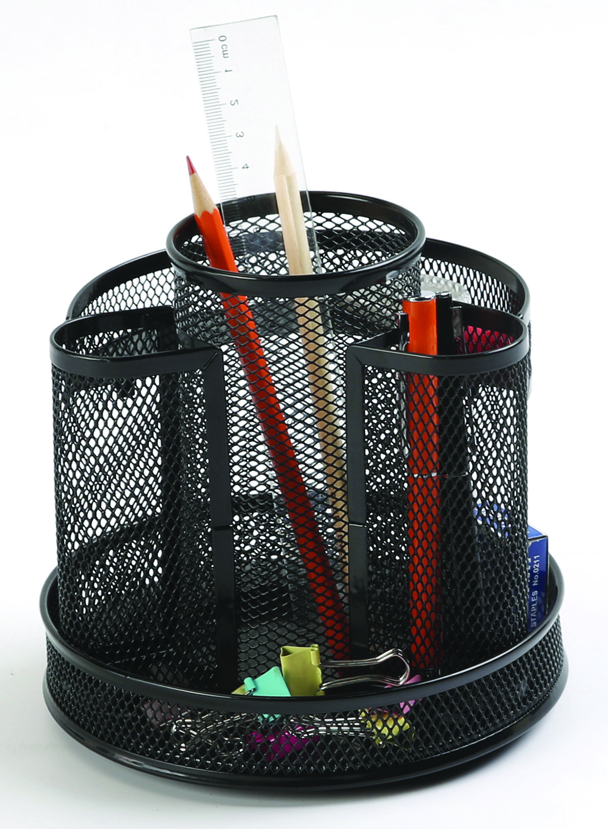 Organizer pentru articolele de birou fabricat din mesh metalic, lacuit.