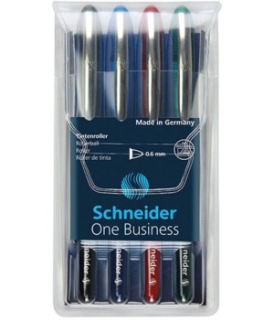 Roller cu cerneala SCHNEIDER One Business, ball point 0.6mm, 4 culori/set - (N,R,A,V)