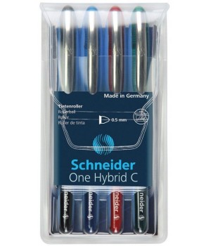 Roller cu cerneala SCHNEIDER One Hybrid C, ball point 0.5mm, 4 culori/set - (N,R,A,V)